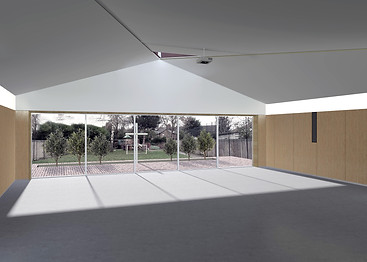 To rear facade, A large glass pivoting window enables people can seat from in and out of the house enjoying reading and dinning.